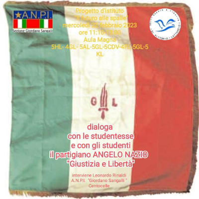 Mercoledì 22 febbraio, presso l' Aula Magna del nostro istituto dalle ore 11:10 alle 13:00, le studentesse e gli studenti coinvolti nel Progetto "Il futuro alle spalle" - la Resistenza a Roma nell'Ottava zona - incontreranno il partigiano ANGELO NAZIO - "Giustizia e Libertà".