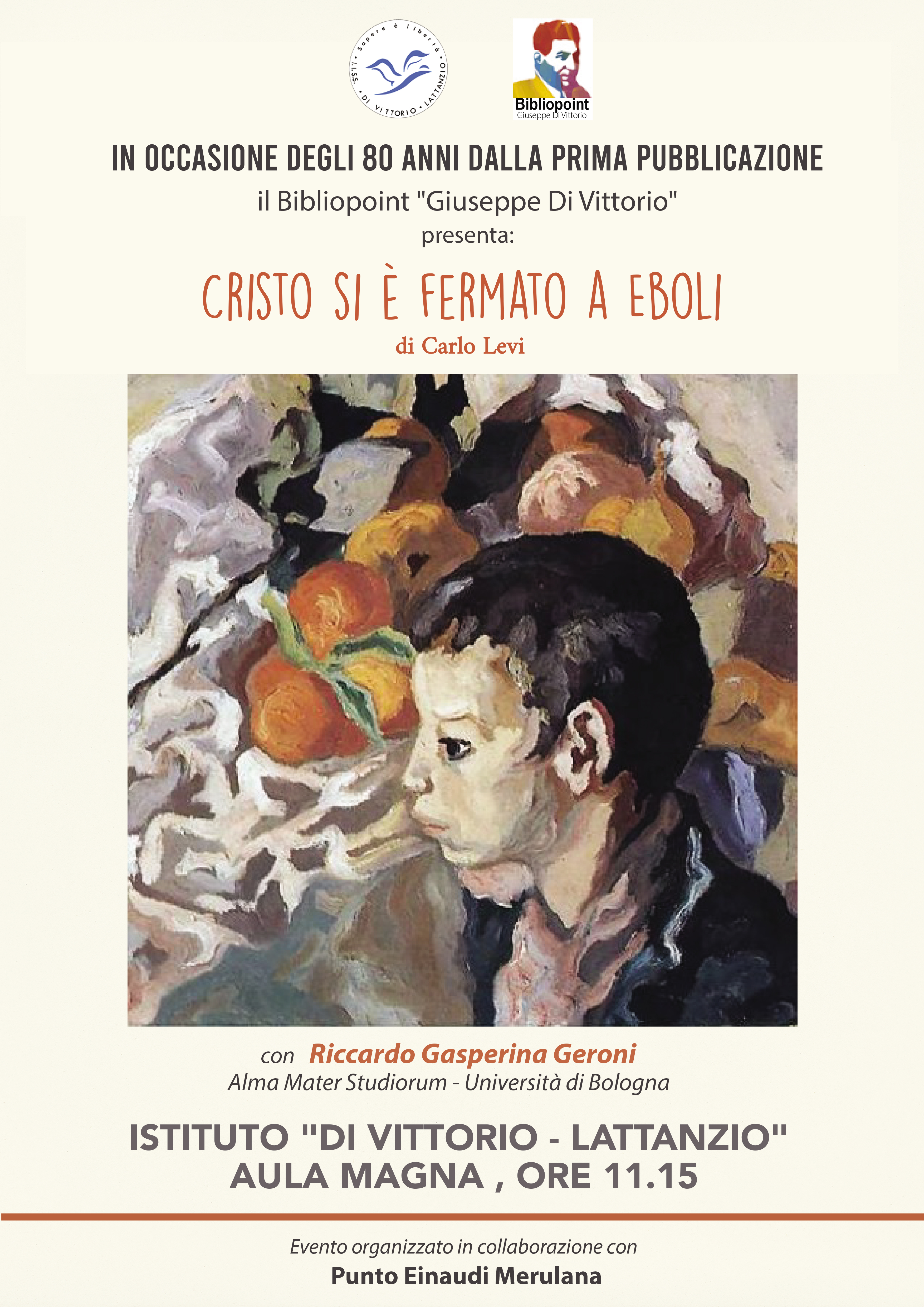 Nell'ambito delle attività del Bibliopoint "Giuseppe Di Vittorio", venerdì 7 febbraio alle ore 11.15 nell’Aula Magna del nostro Istituto si svolgerà la presentazione di Cristo si è fermato a Eboli di Carlo Levi, in occasione degli ottanta anni dalla sua prima pubblicazione.Nella circolare allegata i dettagli organizzativi.