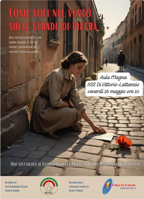 Spettacolo teatrale "Come voci nel vento sulle strade di pietra”- Teatro Civile Venerdì 16 maggio, dalle ore 10 alle 11, le studentesse e gli studenti avranno l’opportunità di assistere gratuitamente, in Aula Magna , allo spettacolo teatrale “Come voci nel vento sulle strade di pietra”, scritto da Pascal La Delfa e Giorgia Filanti, con la regia di Giorgia Filanti, e interpretato da attori professionisti. L’iniziativa si propone di sensibilizzare le nuove generazioni sui temi della guerra, analizzando le motivazioni che spinsero le classi dirigenti del ‘900 a privilegiare l’uso della forza e della violenza, e riflettendo sull’importanza dei valori di rispetto, giustizia, libertà e pace tra i popoli. Lo spettacolo esplora anche il ruolo delle “Carte costituzionali” come strumenti per una vita democratica e pacifica, e le basi per la creazione dell’Unione Europea. Lo spettacolo è realizzato dall' Associazione "Oltre le parole - Teatro Civile" grazie al finanziamento dell’Associazione Italiana Ciechi di Guerra (AICG).