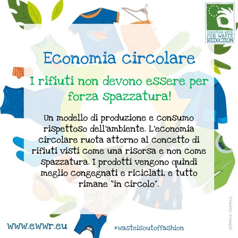 La campagna di comunicazione ambientale della SERR è volta a promuovere tra i cittadini una maggiore consapevolezza sulle eccessive quantità di rifiuti prodotti e sulla necessità di ridurli drasticamente. Anche quest’anno il nostro istituto aderisce alla campagna, proponendo degli spunti di riflessione sui rifiuti tessili, focus tematico del 2022. Con il motto Tessile, circolare e sostenibile: “I rifiuti sono fuori moda!”, la settimana è dedicata alla sensibilizzazione sull’impatto che i tessili hanno a livello ambientale. Dalla produzione alla distribuzione, all’uso e al consumo che ne viene fatto, il settore tessile è uno dei più inquinanti. Inoltre, dal 1° gennaio 2022, con il d.L. 116/2020 è in vigore l’obbligo della raccolta differenziata dei materiali tessili.