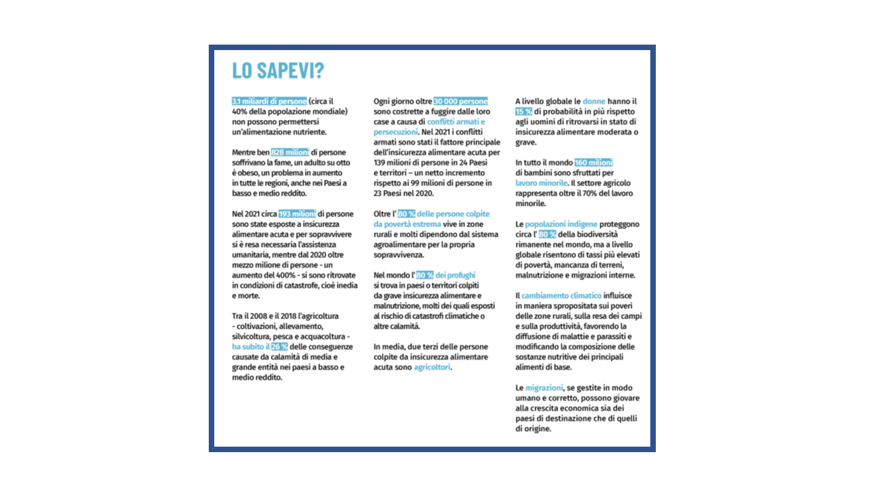 - Lo sapevi? per conoscere “numeri e fatti” e stimolare le coscienze;
