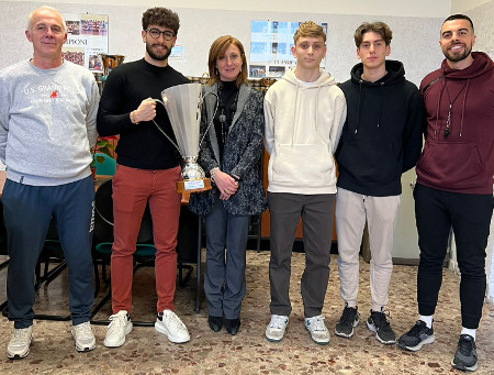 Il passaggio di testimone è avvenuto oggi, in presenza della nostra DS, prof.ssa Annalisa Laudando, tra il capitano della squadra del 2012 Andrea Sabbatini e il capitano della squadra 2023 Cristian Scipioni.